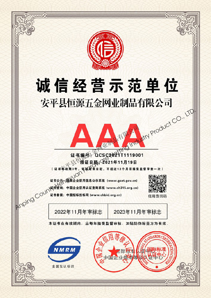 多年來,安平縣恒源五金網(wǎng)業(yè)制品有限公司堅持“科技興企、質(zhì)量立業(yè)”的經(jīng)營理念和“誠心為本、客戶至上”的合作宗旨,優(yōu)化生產(chǎn)工藝,打造優(yōu)質(zhì)產(chǎn)品,提供完善的服務,受到國內(nèi)外客戶的一致好評,產(chǎn)品行銷全國各地,并出口美國、德國、韓國、日本、臺灣等國家和地區(qū)。